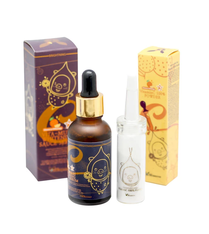 Kit de poudre de vitamine C et de sérum anti-taches qui aidera à unifier le teint de la peau.
